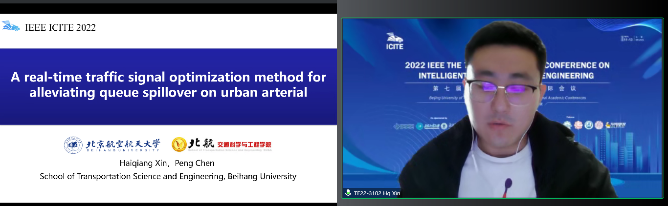 | TE22-3102 Haiqiang Xin | Beihang University, China for the paper co-authored with Peng Chen entitled A Real-Time Traffic Signal Optimization Method for Alleviating Queue Spillover on Urban Arterial |